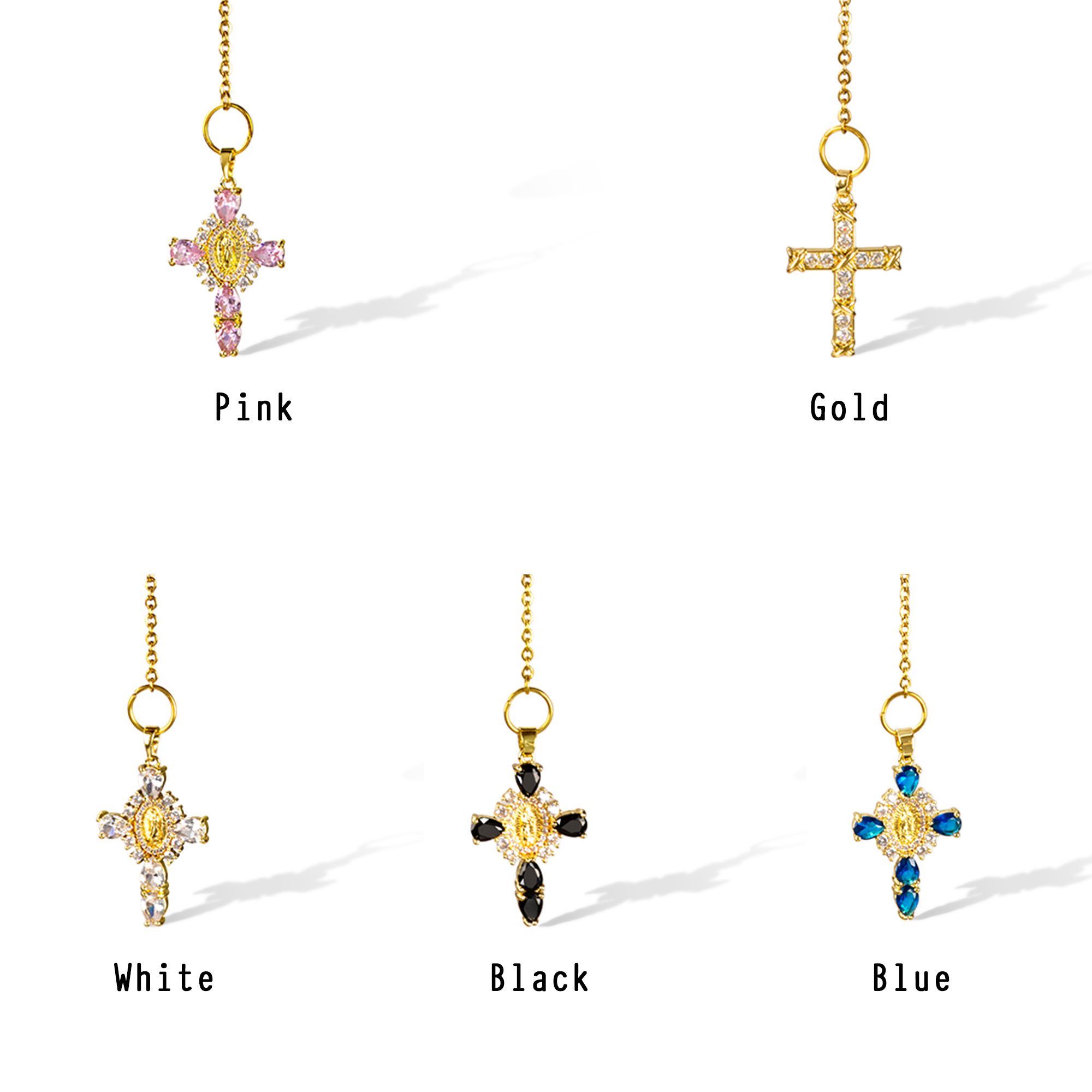 Western Rosary Charm - The charm features a beautiful cross adorned with sparkling details, creating a lovely visual impact. It blends faith with a touch of Western flair, ideal for any car enthusiast.
