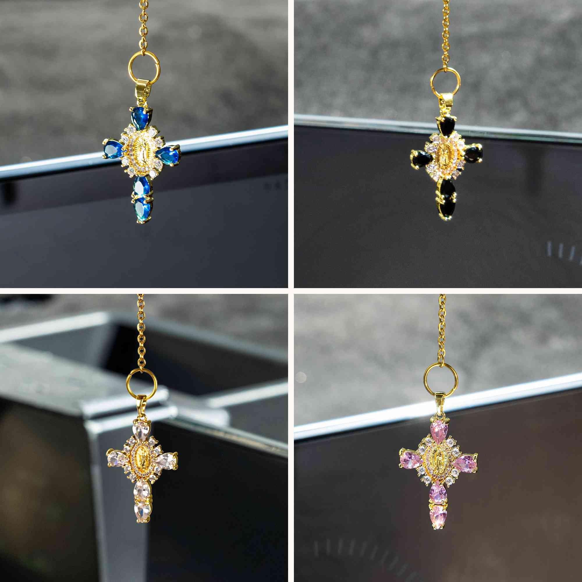 Stylish Rear View Mirror Decor - This unique car charm combines a mini cowboy hat and a Virgin Mary cross, adding a charming and spiritual touch to your vehicle. It’s perfect for those who appreciate Western aesthetics and Christian symbols.