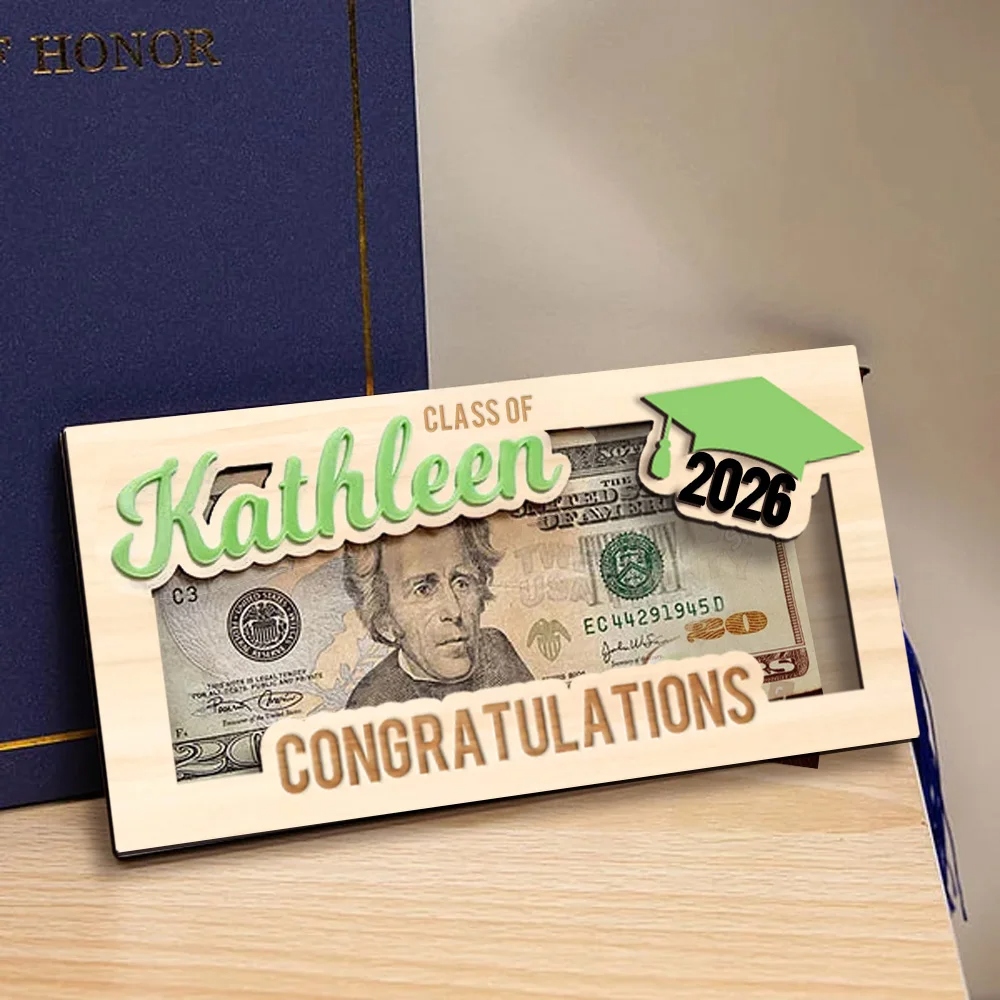 Personalized Touch - This money holder is personalized with the graduate's name and the class year, creating a memorable and unique keepsake to celebrate this significant milestone in their life.