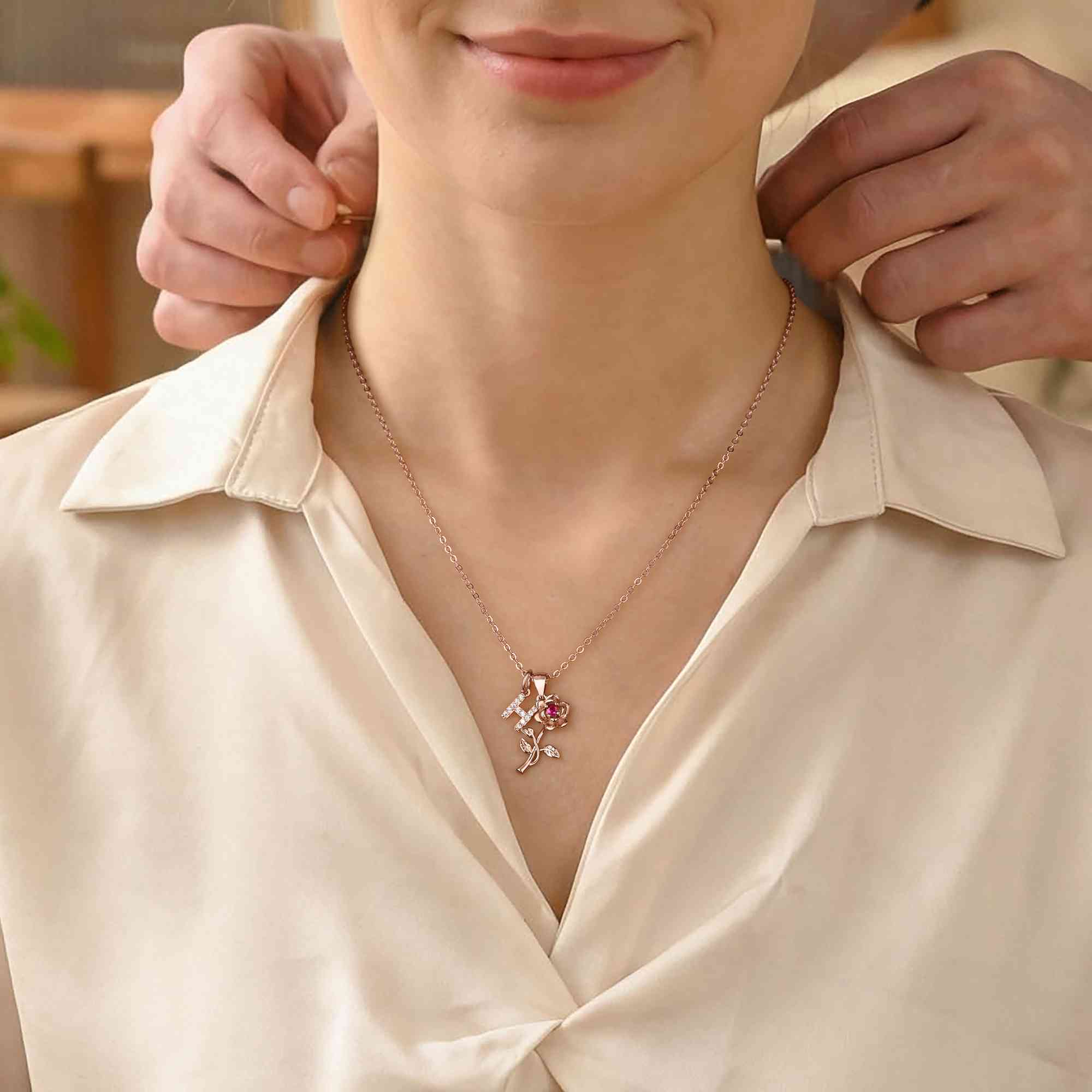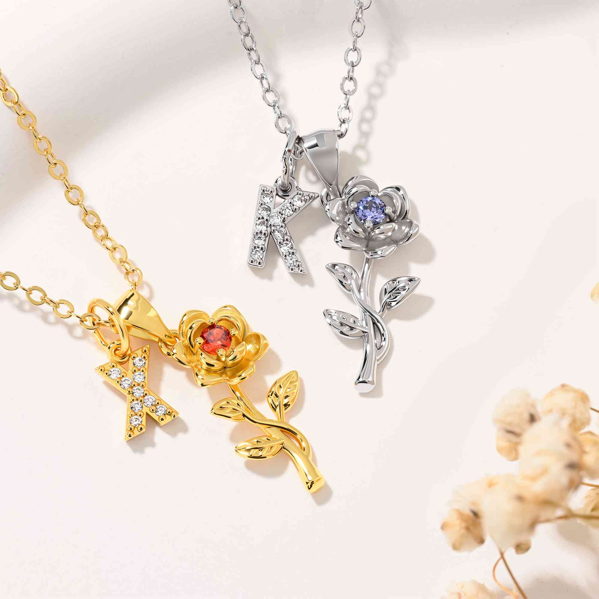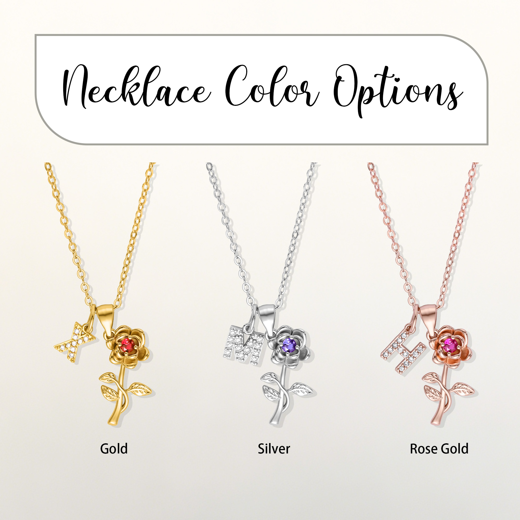 Elegant Rose & Initial Design – This delicate necklace features a beautifully crafted rose pendant with a sparkling gem at its center, symbolizing love and beauty. A personalized initial charm hangs beside it, adding a touch of individuality and sentiment.